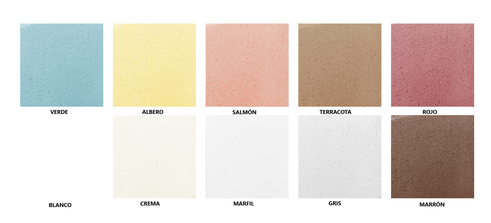 Disponible bajo pedido en : gris, gris hidrofugado, blanco, crema, marfil,salmón, albero, terracota, marrón y rojo.